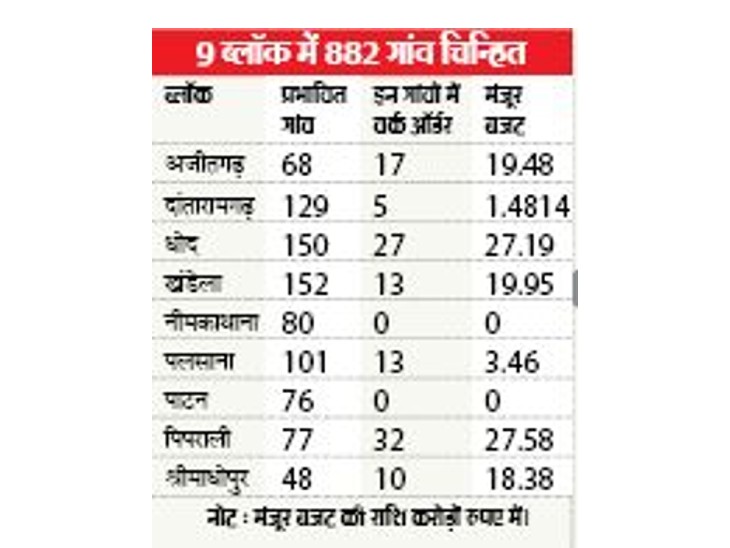 जल जीवन मिशन में सीकर जिले की 375 ग्राम पंचायताें के 1179 राजस्व गांवाें के करीब चार लाख से ज्यादा परिवाराें को शामिल किया था। योजना के तहत इन परिवारों को घरों तक पेजयल पाइप लाइन से जोड़ा जाना है। तीन साल की मशकत के बाद भी जलदाय विभाग 223 ग्राम पंचायताें में 359 गांवाें के लिए पहले चरण में 411 कराेड़ रुपए का प्लान तैयार कर पाया है। पंचायत, जलदाय विभाग व अन्य एजेंसियों में समन्वय नहीं बना तो यह प्रोजेक्ट हाथ से निकल सकता है।